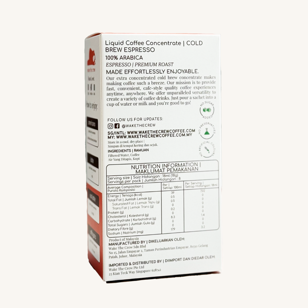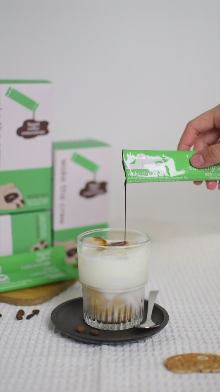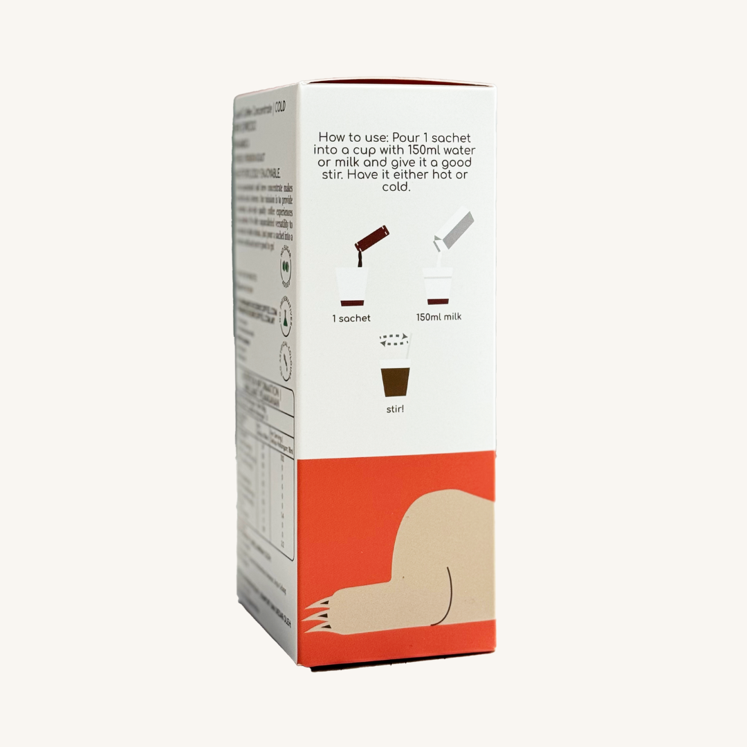 Cara Penggunaan: Tuangkan 1 sachet kopi pekat ke dalam 150ml air panas/sejuk, susu atau susu alternatif.