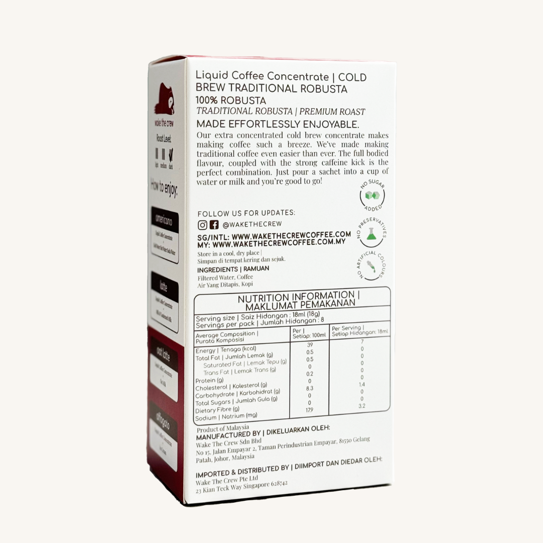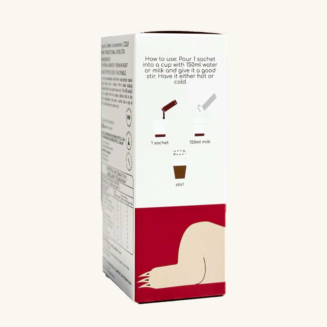 How To Use: Pour 1 sachet of coffee concentrate into 150ml of hot/cold water, milk or alternative milk.